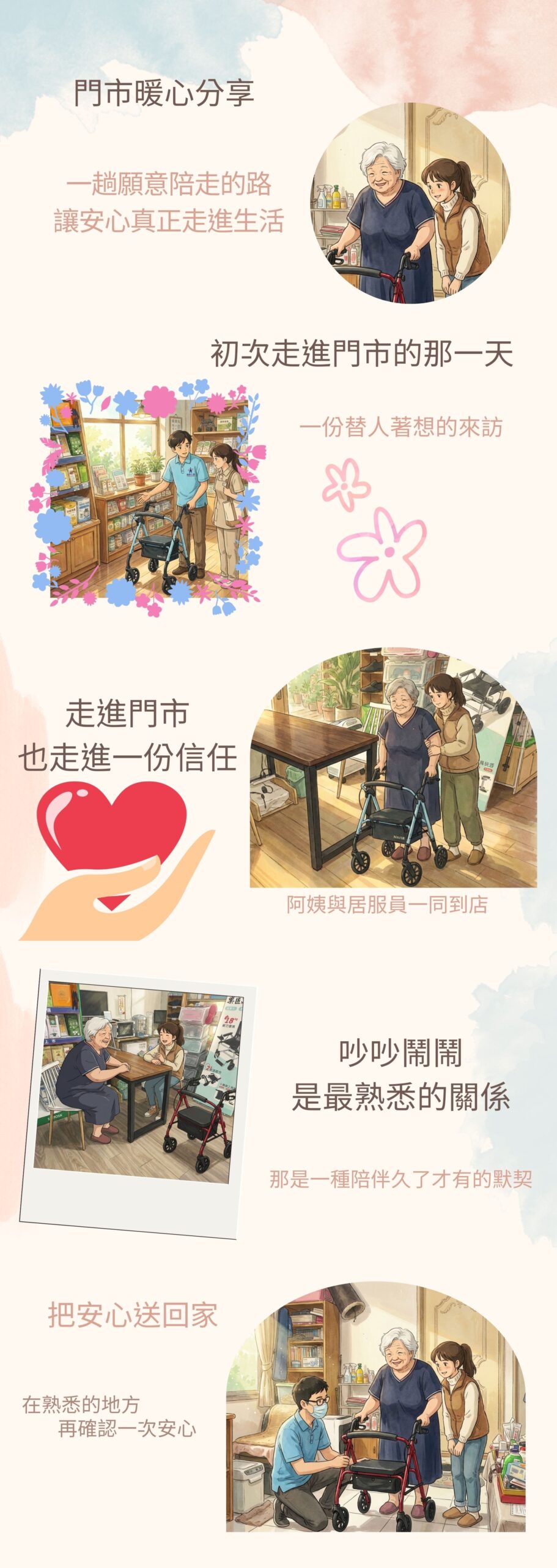 我們告訴她:「不用擔心,真正需要輔具的人,我們一定會用最專業、最用心的方式陪她找到適合的選擇。」