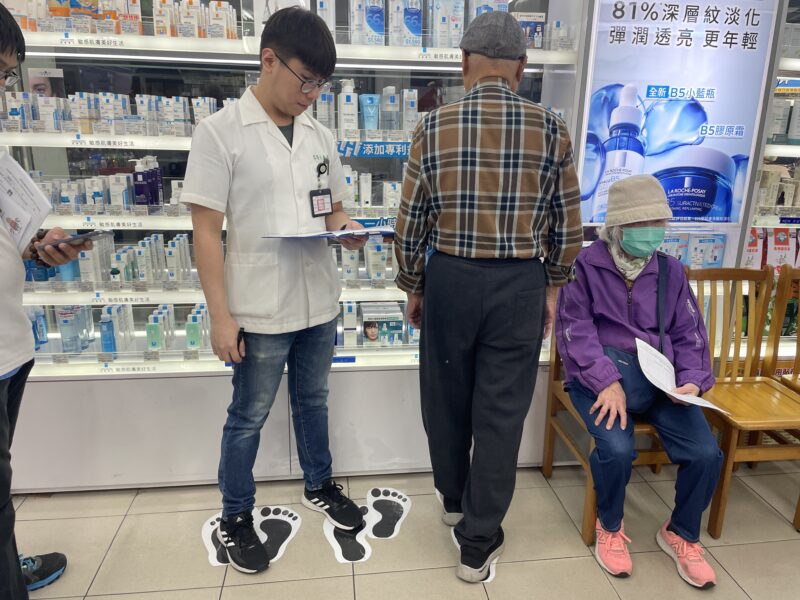 一早藥局門口就開始熱鬧起來,許多長輩帶著期待的心情前來,有人是藥師邀約,有人是看到我們在量測區布置的腳印,好奇地走上來詢問。活動比想像中更踴躍,也比想像中更溫暖。