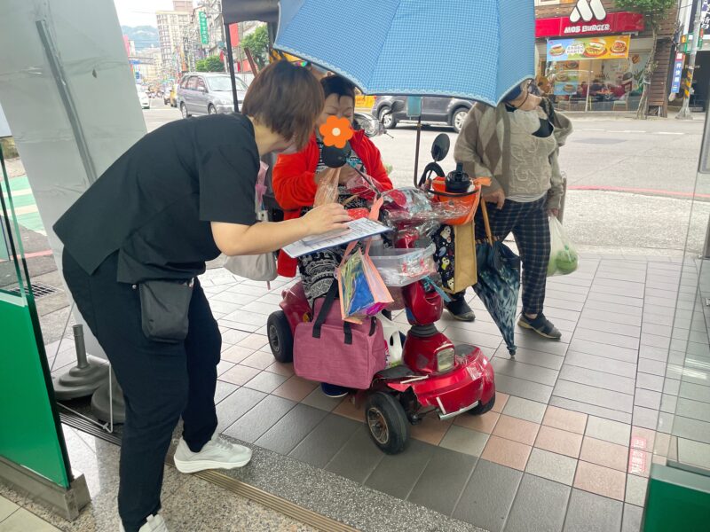 有位長輩行動不便,我們的同仁一路陪她到門口,把問卷資料與健康建議溫柔地交到她手上。