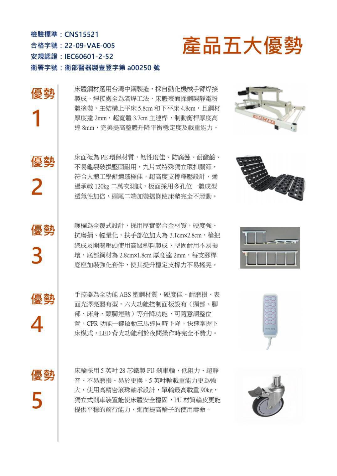 醫療器材許可證 / 藥商販賣許可證 • 商品名稱:維美交流電力可調整式病床(未滅菌) • 醫療器材許可證核准字號:衛部醫器製壹登字第 a00250 號 • 廠商名稱:家護醫材有限公司 • 廠商地址:新北市三峽區弘園街38號3樓 • 製造廠名稱:維美工業股份有限公司溪南廠 • 製造廠地址:臺中市烏日區溪南路一段 506 巷 500 弄 80 號 • 原產地:TAIWAN • 製造日期:詳見商品包裝標示及說明 • 有效日期(或保存期限):詳見商品包裝標示及說明
