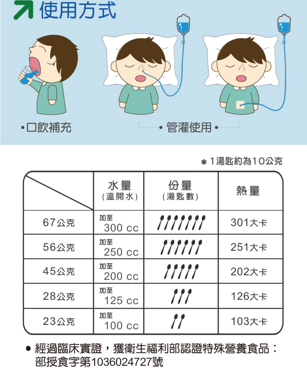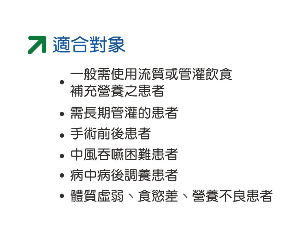 - 於手術前後或病中併後調養使用,營養均衡無負擔